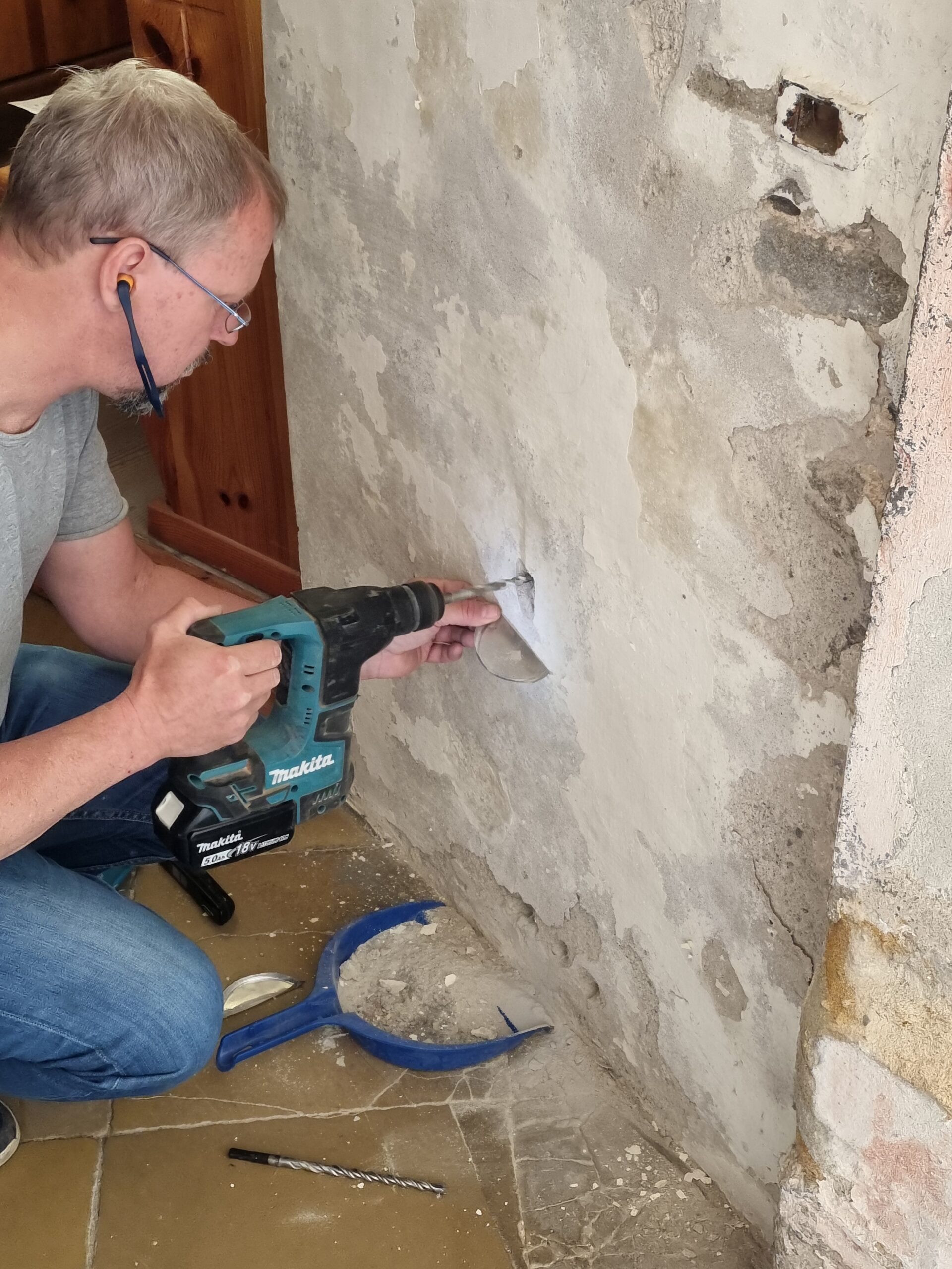 Eine häufige Maßnahme betrifft den bestehenden Altputz. Wenn dieser durch Feuchtigkeit und Salze bereits stark geschädigt oder versalzen ist, kann es notwendig sein, den betroffenen Putz zu entfernen oder zu sanieren. Wichtig ist dabei: Das Entfernen des Altputzes selbst ist keine Trockenlegungsmaßnahme, sondern dient lediglich dazu, beschädigte oder versalzene Putzschichten zu erneuern.