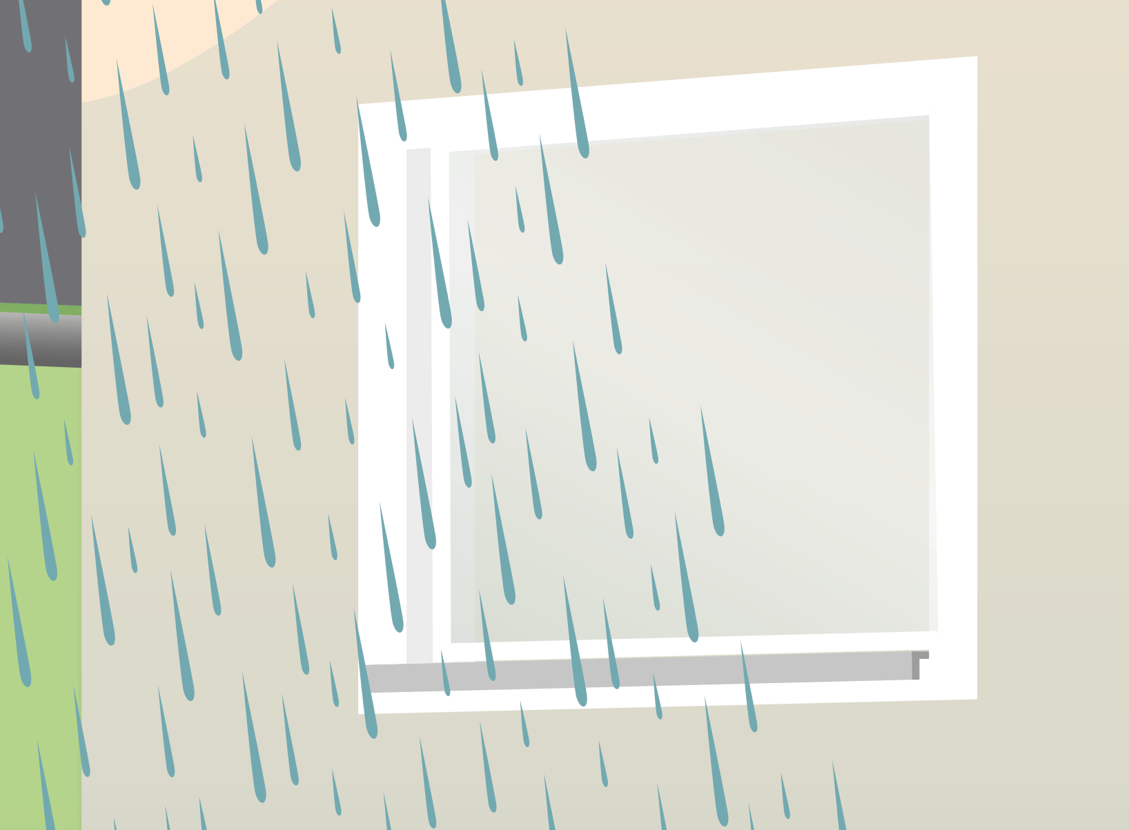 An der Wetterseite anprasselnder Regen dringt durch wasserdurchlässigen Putz oder in unverputztes Mauerwerk ein.